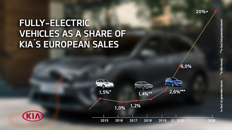 KIAs EV-fokus opnår allerede hidtil usete resultater i Europa. I første kvartal af 2020 steg salget af nye elbiler med 75 procent sammenlignet med første kvartal i 2019 til 6.811 enheder. Dette betød, at nul-emissionsbiler fra KIA tegnede sig for 6 procent af virksomhedens samlede europæiske salg* i løbet af første kvartal af 2020 – fra 2,9 procent i første kvartal af 2019.