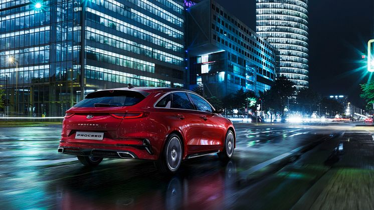 ProCeed GT markerer, at KIAs højtydende ”GT”-model er tilbage, og den er udstyret med samme 1,6-liters T-GDi-motor som den nye Ceed GT. Med en ydelse på 204 hk og et drejningsmoment på 265 Nm er det den mest kraftfulde motor i modelprogrammet. Den nye ProCeed GT og Ceed GT kan for første gang også kombineres med KIAs 7-trins dobbeltkoblingsgearkasse, som giver mulighed for lynhurtige gearskift via paddleshift på rattet.