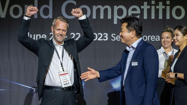 Fredericia, den 4. juli 2023 - Først vandt Lars Schmidt fra Kia forhandler, Jes P. Jessen i Aabenraa det danske Skills Cup for servicerådgivere. Og i sidste uge deltog han i den globale finale af Kia Service Advisor Skills Cup i Korea. Det gik godt - og Lars kunne vende hjem med en flot sølvmedalje.