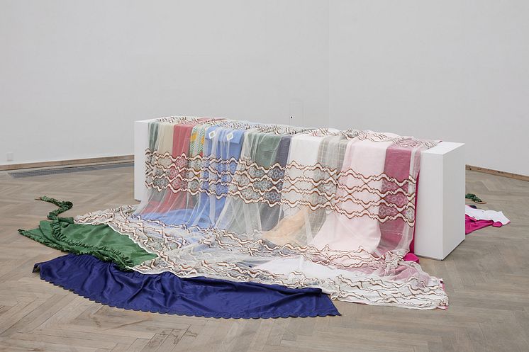 Installationsview fra Forårsudstillingen 2024 på Kunsthal Charlottenborg: Wisrah C. V. da R. Celestino, Privacy, 2023.