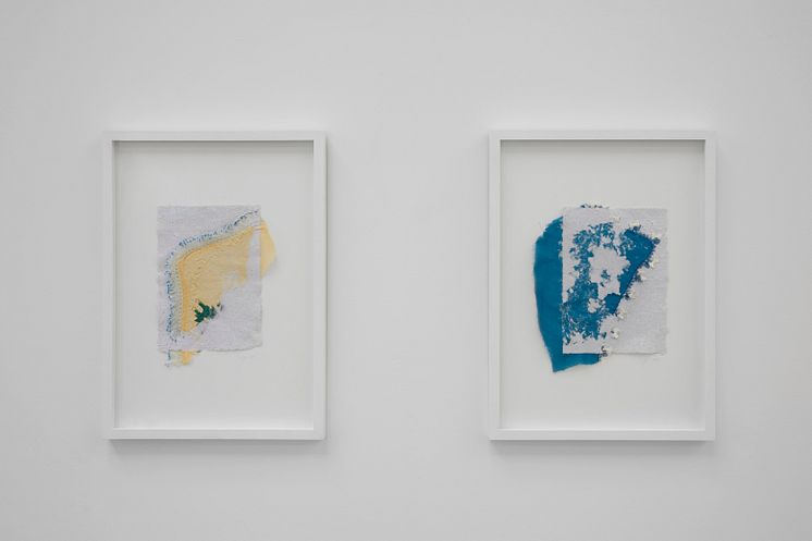 Installationsview fra Forårsudstillingen 2024 på Kunsthal Charlottenborg: Berna Süslü, Echoes of home / Surfaces 1, 2023. Echoes of home / Surfaces 2, 2023.