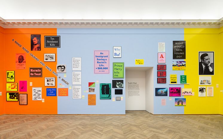 Jeremy Deller, Warning Graphic Content, 1993-2021. Rejected Tube Map Cover Illustration, 2007. Installation view, Welcome to the Shitshow!, Kunsthal Charlottenborg, 2023. Courtesy of the Artist and Art:Concept, Paris and The Modern Institute/ Toby Webster Ltd., Glasgow. Photo by David Stjernholm.