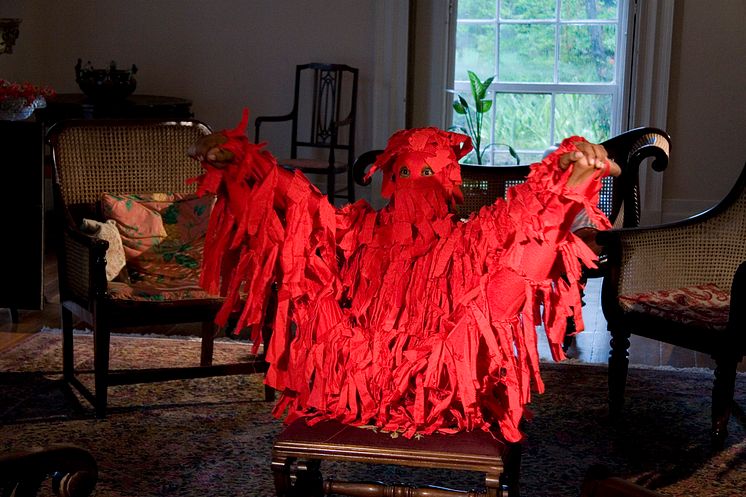 Sonia Boyce, Crop Over, 2007-. Still, two-screen video with Shaggy Bear