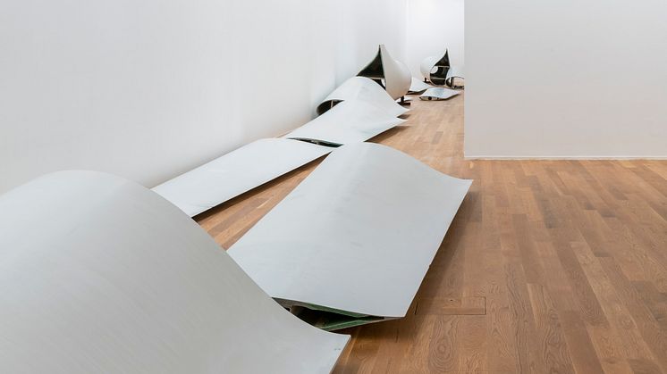 STRIPPED consists exclusively of new works. The exhibition's biggest element is three blades from a wind turbine, shown here cut to pieces – a violently reworked readymade now lying on the floor of Kunsthal Charlottenborg like a fallen giant. The exhibition delves into ideas from the borderlands of human and social experience: how can we work with these notions that offer glimpses of what may be on the other side of our own perceptions and experiences? Do we have any choice but to try to contact them if we want to transform ourselves and our relationship with the world of which we are part?