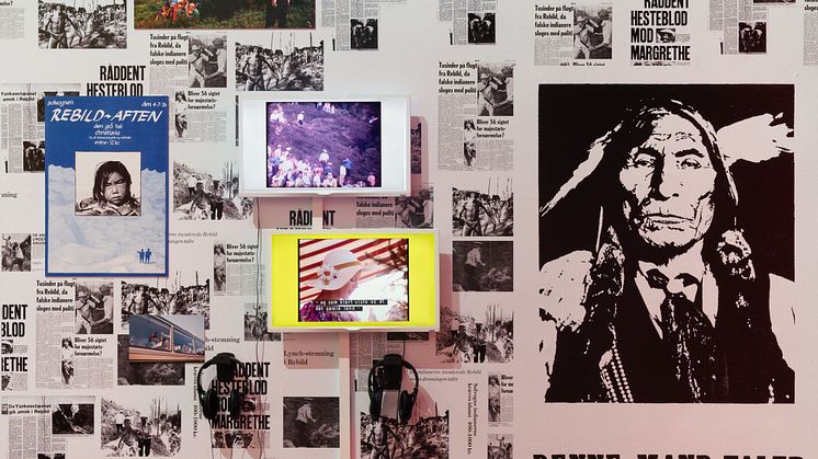 In connection to the exhibition, New Red Order says: “Reflecting on Denmark's 300-year colonial history, we wanted to address the continued legacy of the colonization in Kalaallit Nunaat and the Sami people in Sápmi. Although our recent research has been focused on ‘the North’ the exhibition takes an ‘Internationalist’ perspective on 'Indigeneity' in order to celebrate and complicate similarities and differences. We have invited Indigenous and ‘non-Indigenous’ artists from across the world to participate in the exhibition. Simultaneously, we have looked towards other kinds of visual culture that exemplify, celebrate and complicate a contemporary global Indigenous presence and future.”