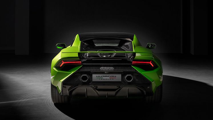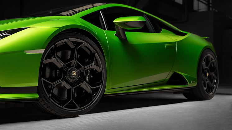 Modellens profil adskiller sig også fra resten af Huracán-familien. Tecnica er nemlig hele 6,1 centimeter længere end Huracán EVO, og trods identisk højde og bredde fornemmes Tecnica også lavere og bredere. Den særlige og skulpturelle arkitektur, som definerer enhver Lamborghini, er især tydeligt på den opgraderede bagende. Den nydesignede motorhjelm i kulfiber er med til at sætte fokus på den massive V10, mens de optimerede luftindtag og en markant diffuser matches af de nye, sekskantede afgangsrør. Den fikserede hækvinge fuldender Tecnicas unikke linjer og bidrager desuden med en 35 procents forøgelse af bilens downforce bagpå sammenlignet med Huracán EVO RWD. Dette sker samtidig med, at luftmodstanden er sænket med 20 procent, hvilket forbedrer den aerodynamiske balance og øger stabiliteten under hårde opbremsninger og i sving. Læg dertil nye 20-tommers Damiso-fælge, som med sit sekskantede design henter inspiration fra konceptbilen Lamborghini Vision GT