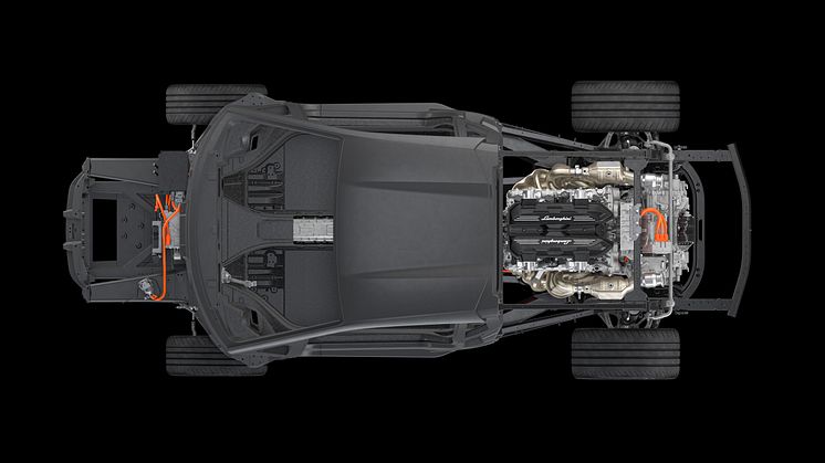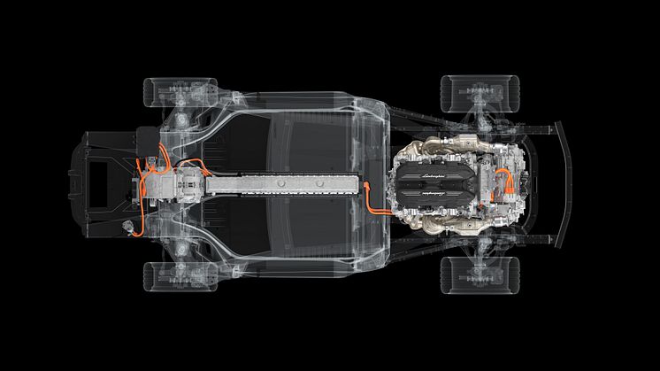 De øvrige to elmotorer er placeret på forakslen og driver forhjulene, hvilket gør LB744 firehjulstrukket. Elektrificeringen giver blandt andet den nye Lamborghini et ekstra kraftigt moment ved lave motoromdrejninger, og den særlige opbygning betyder ikke mindst, at LB744 kan køres som en fuldt elektrisk firehjulstrukket bil. Dette er med til at reducere den samlede C02-emission med omkring 30 procent, sammenlignet med Aventador.