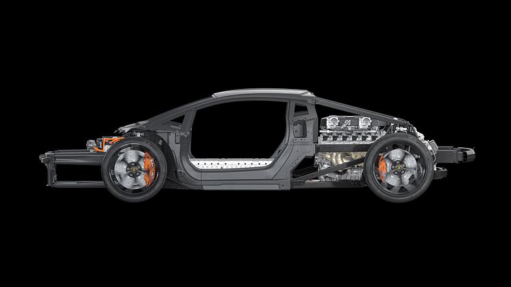 Desuden er bilens frontstruktur, modsat tidligere tiders aluminiumskonstruktion, nu skabt i Forged Composites, et særligt materiale bestående af korte kulfiber vædet i harpiks. Denne teknologi blev patenteret og anvendt af Lamborghini på de første strukturelle komponenter helt tilbage i 2008.