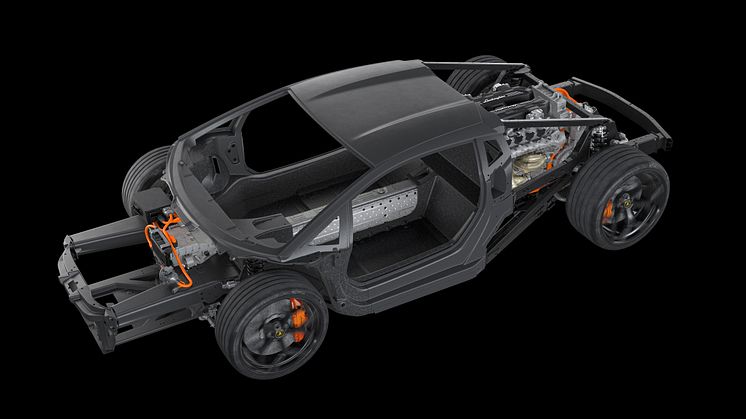 LB744 byder også på en udstrakt anvendelse af innovative materialer i selve konstruktionen af den nye supersportsvogn. LB744 er baseret på et nyt aeronautisk inspireret chassis, som blandet andet består af en monocoque – den centrale part af bilen, som rummer kabinen – skabt i multiteknologi-kulfiber.
