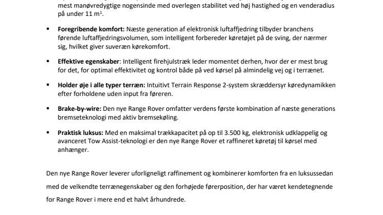 DEN NYE RANGE ROVER: BETAGENDE MODERNITET, UFORLIGNELIGT RAFFINEMENT OG UOVERTRUFNE EGENSKABER