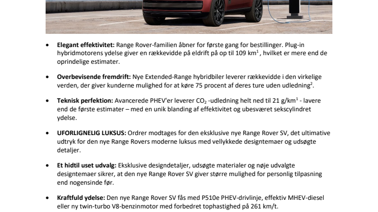 NY RANGE ROVER: ÅBENT FOR BESTILLINGER AF FLAGSKIB-MODELLEN SV OG UDVIDET RÆKKEVIDDE FOR PLUG-IN HYBRID MED OP TIL 109 KILOMETERS RÆKKEVIDDE PÅ ELDRIFT
