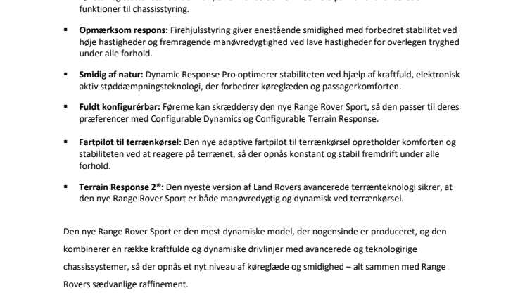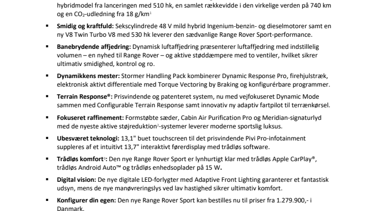 - Dynamisk luksus: Den nye Range Rover Sport kombinerer dramatisk modernitet og markant karakter med elektrificeret ydelse.