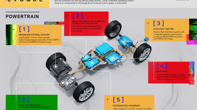 De nye kompakte SUV-modeller produceres med Land Rovers Premium Transverse-arkitektur, som blev udviklet med henblik på at integrere plug-in- og mild-hybrid-teknologier. Hardwaren er intelligent placeret under gulvet i kabinen uden at påvirke kabinepladsen.