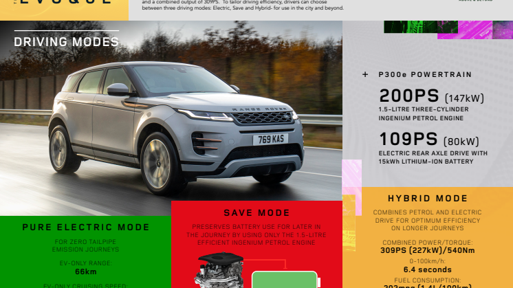 Nick Rogers, Jaguar Land Rover Executive Director of Product Engineering, sagde: “Den modulopbyggede, skalérbare og fleksible arkitektur, som kendetegner Ingenium-modelfamilien, er designet, udviklet og produceret internt, hvilket giver os mulighed for at være én af de første på markedet til at præsentere et trecylindret plug-in hybrid-system, som sikrer vores kunder endnu flere valgmuligheder. Kombinationen af elektrificering, downsizing og letvægtsmaterialer sikrer imponerende brændstofværdier, elektrisk rækkevidde og bykørsel uden udledning. Uanset om man kører længere køreture, i terræn eller kører i byen, tilbyder vores nyeste plug in-hybrid-udgaver de samme fantastiske egenskaber og den samme tryghed med fuldt elektrisk kørsel og effektivitet i verdensklasse, som kendetegner Land Rover.”