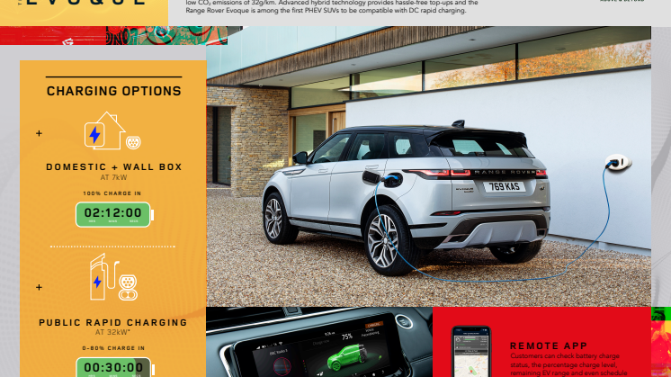 Kunderne kan forblive opkoblet til Evoque og Discovery Sport PHEV via Land Rovers intelligente InControl Remote smartphone-applikation. Uanset om kunden er hjemme eller på farten, giver appen vedkommende mulighed for at overvåge bilens ladestatus, klargøre bilen til den forestående køretur eller endog indstille en opladningstimer for at kunne drage fordel af lave energipriser i perioder med lav belastning af energinettet.