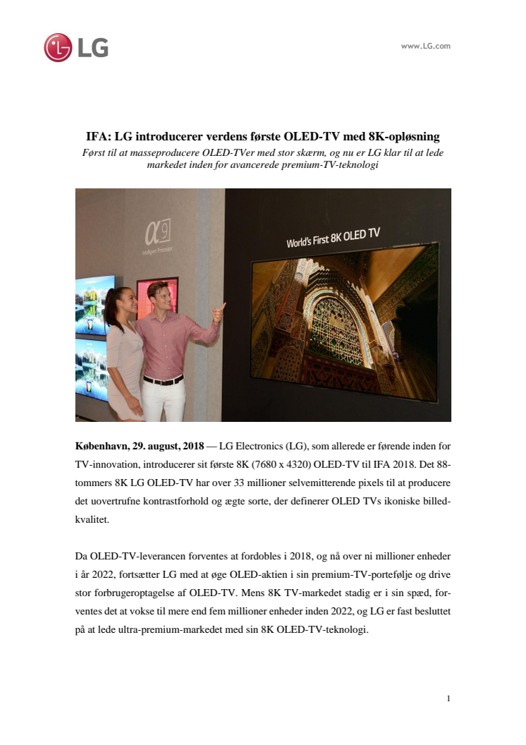 IFA: LG introducerer verdens første OLED-TV med 8K-opløsning