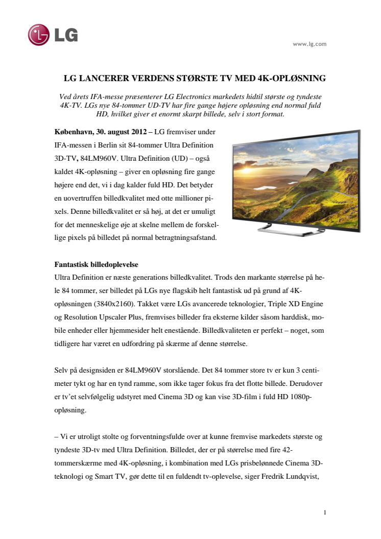 LG LANCERER VERDENS STØRSTE TV MED 4K-OPLØSNING
