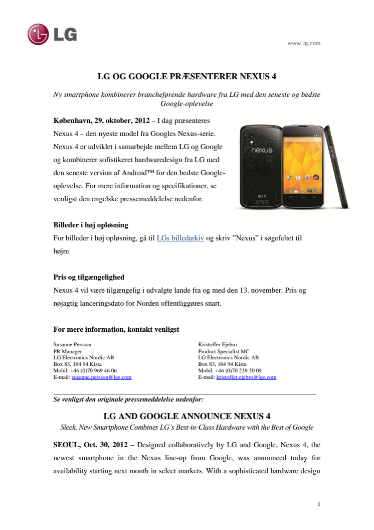 LG OG GOOGLE PRÆSENTERER NEXUS 4