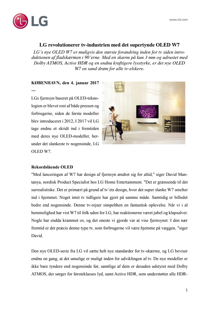 LG revolutionerer tv-industrien med det supertynde OLED W7