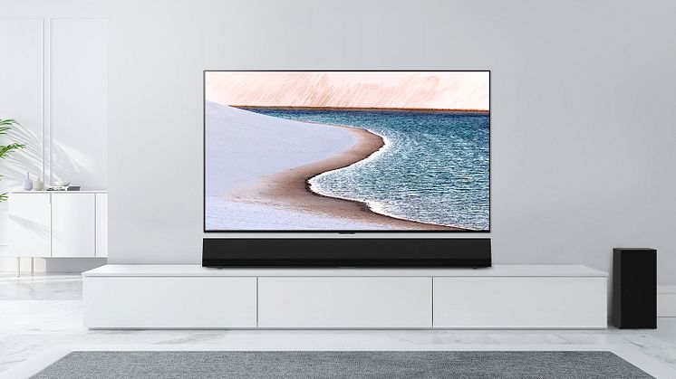 Grundtanken med LG’s Gallery-design er at skabe et tv-system, der kan passe til ethvert rum i boligen – et koncept som LG’s designere kalder ”at tilføje rumlig værdi”. LG GX Soundbar har i øvrigt samme bredde som LG OLED GX på 65”.
