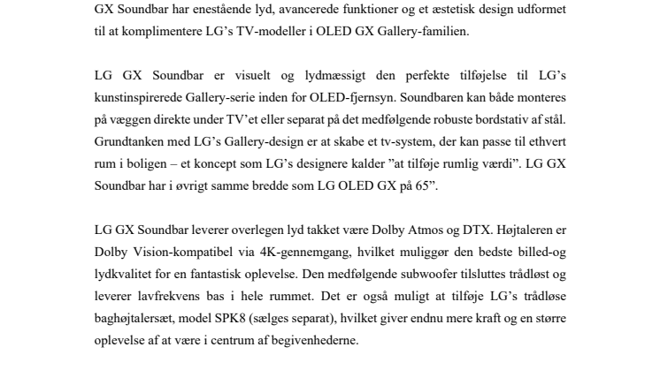 LG lancerer den nye GX Soundbar med enestående lyd og perfekt pasform til OLED GX