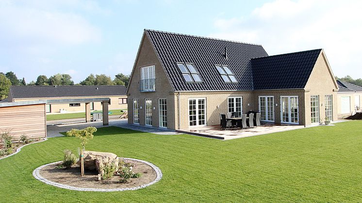 Når man står på 1. salen i familien Jensens helt nye Lind & Risør-hus, drages man straks mod det store vestvendte gavlvinduesparti med udsigt over kvarteret og grønne arealer lidt længere væk. Man kan herfra endda skimte familiens tidligere nabolag blot 250 meter borte.