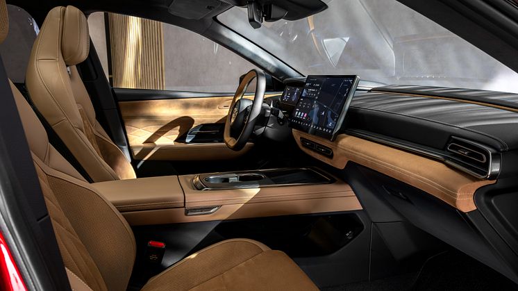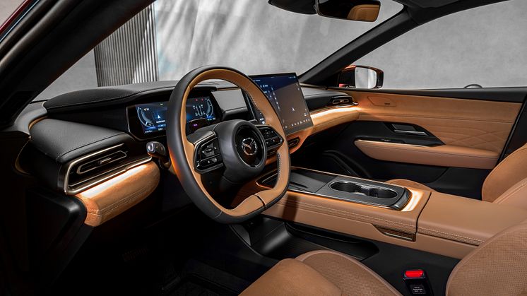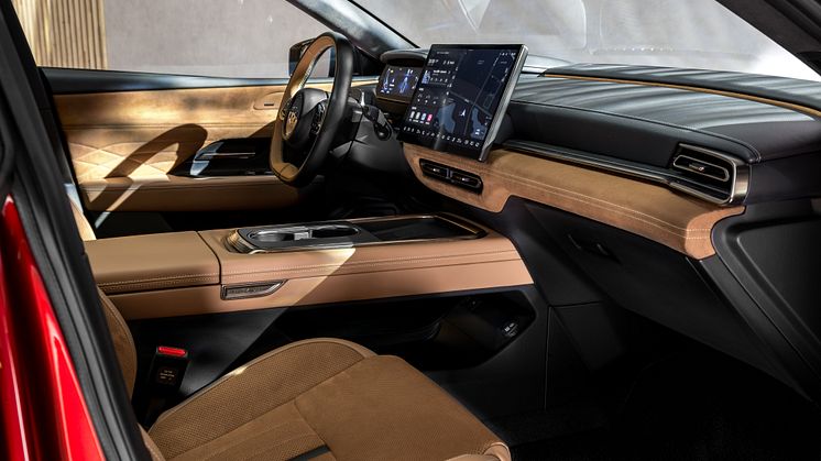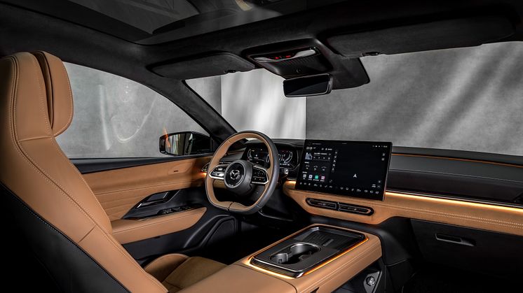 Interiøret i Mazda6e er inspireret af det japanske koncept "ma", som lægger vægt på enkelhed og det åbne rum. For- og bagsædepassagererne nyder godt af generøs benplads, og panoramataget bringer naturligt lys ind. Kvalitetsmaterialer skaber en rolig og fokuseret atmosfære, mens den svævende midterkonsol og instrumentpanelet forstærker følelsen af lethed.