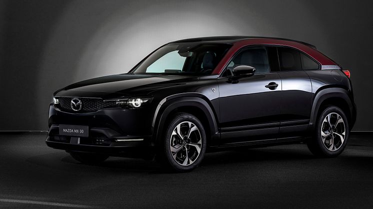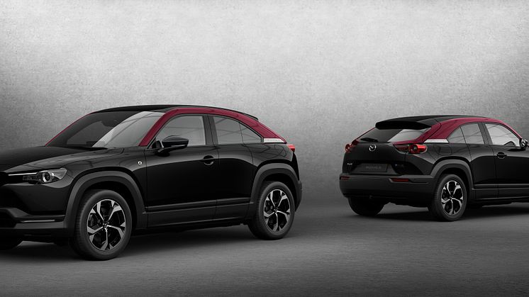 Eneste forskel er, at MX-30 R-EV i en periode vil blive solgt som specialmodel med navnet Edition R. Den er baseret på højeste udstyrsniveau, Makoto, og har en unik totonet lakering i farverne Jet Black og Maroon Rouge og et interiør med en række unikke detaljer.