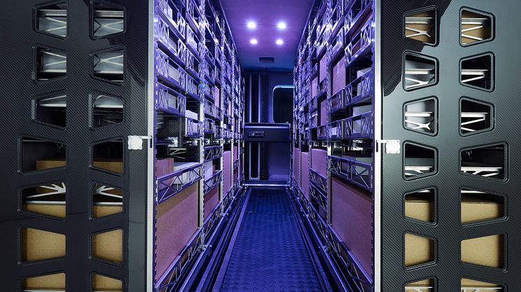 En stor del af chaufførens tid går i dag med at laste pakker i bilen i den rigtige rækkefølge og finde dem igen, når de skal leveres. I Vision Van indgår et automatisk laste- og leverancesystem, som arrangerer pakkerne på særskilte ”hylder” i den optimale rækkefølge i forhold til rute og leveringer.
