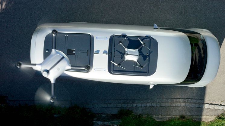 Når bilen nærmer sig destinationen, gøres dronerne automatisk klar med pakker og batteri. Når bilen holder stille åbnes luger i taget, pakkerne gøres fast til dronerne, batteriet kobles til, og dronerne er på vej. Dronerne kan levere pakker op til 20 km væk.