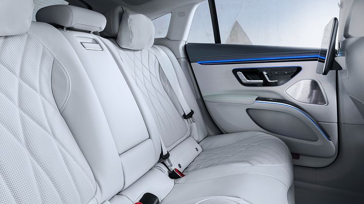 Den nye EQS fås med et væld af innovative udstyrsmuligheder, og det er blandt andet muligt at vælge automatiske komfortdøre. Når føreren nærmer sig bilen, kører bilens dørhåndtag ud – og førerdøren åbner automatisk og byder velkommen. Fra MBUX-systemet i kabinen er det desuden muligt for føreren at åbne og lukke bilens øvrige døre.
