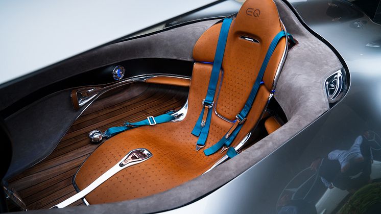 Eftersom føreren bogstaveligt talt er i højsædet, er Vision EQ Silver Arrow udstyret med helt særlige instrumenter. Bilen kombinerer traditionelle materialer som læder, poleret aluminium og solid valnød med digitale løsninger og højteknologi. For at komme ned i cockpittet løftes en krave, som efterfølgende sænkes ned over føreren.