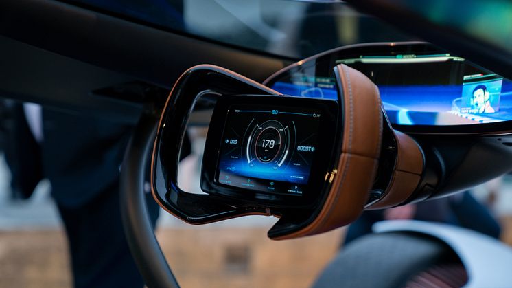 En detalje, som fulgte med i Vision EQ Silver Arrow er kraven over cockpittet og den dråbeformede forrude.