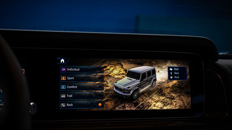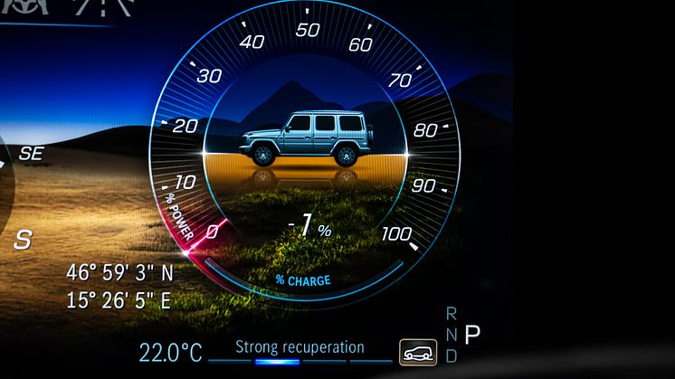 G-Klassen brillierer i terrænet, hvor den klatrer på stigninger på op til 45° og sidehældninger på 35°. Vadedybden er 15 cm højere end på modeller med forbrændingsmotor og tæller hele 85 cm, mens selve frihøjden er 25 cm.
