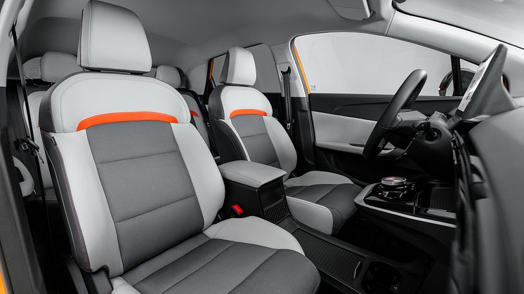 Den generøse kabine i MG4 Electric er bevidst minimalistisk designet med vægt på vigtige principper om enkelthed, teknologi og kvalitet. Kabinen optimerer den tilgængelige plads med lys, elegante instrumentpaneler og betjeningselementer samt interiørmaterialer i høj kvalitet og en omhyggelig finish. Midterkonsollens flydende design skaber mere plads og integrerer nyttige funktioner som f.eks. opbevaring til en smartphone og trådløs opladning. Det dobbelt-egede rat kan indstilles i højden og længden. Rattet er i læderfinish og med varme ligesom begge forsæder. Desuden er førersædet med 6-vejs elektrisk indstilling.
