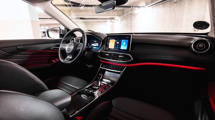 MG EHS Plug-in Hybrid har en imponerende rummelig og komfortabel kabine med et smart infotainmentsystem, som assisterer føreren med eksempelvis at bakke, bilens køreindstillinger og navigation.