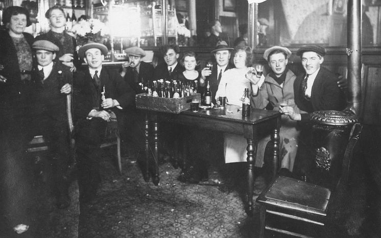 Sømænd på landlov. Med øl og piger. Ca. 1920.