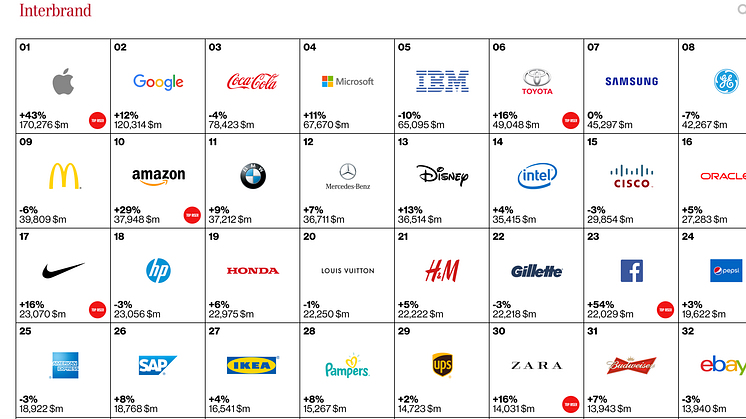 Hvert år rangordnes verdens mest værdifulde brands, og i år har vi kigget lidt ekstra interesseret på listen. Udover unikke produkter, kreativitet og imponerende vækst har de en fællesnævner: Mynewsdesk.