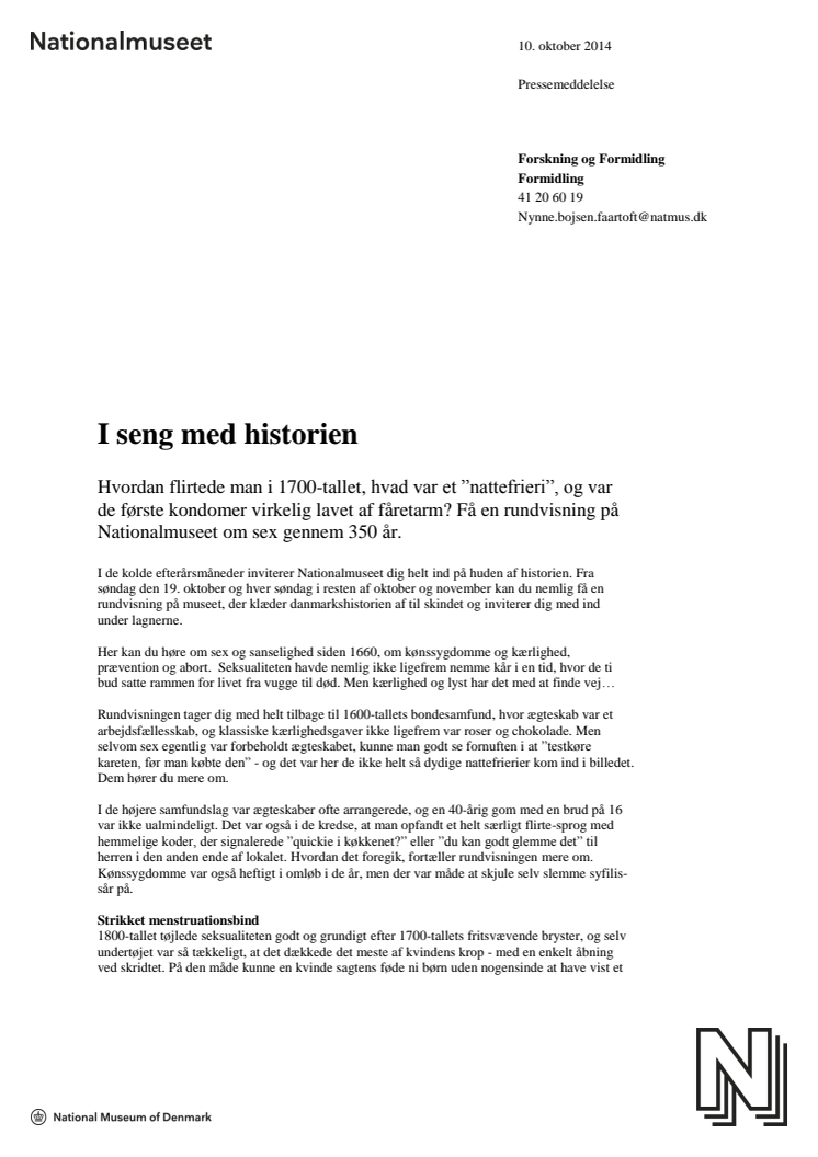Hvordan flirtede man i 1700-tallet, hvad var et ”nattefrieri”, og var de første kondomer virkelig lavet af fåretarm? Få en rundvisning på Nationalmuseet om sex gennem 350 år.