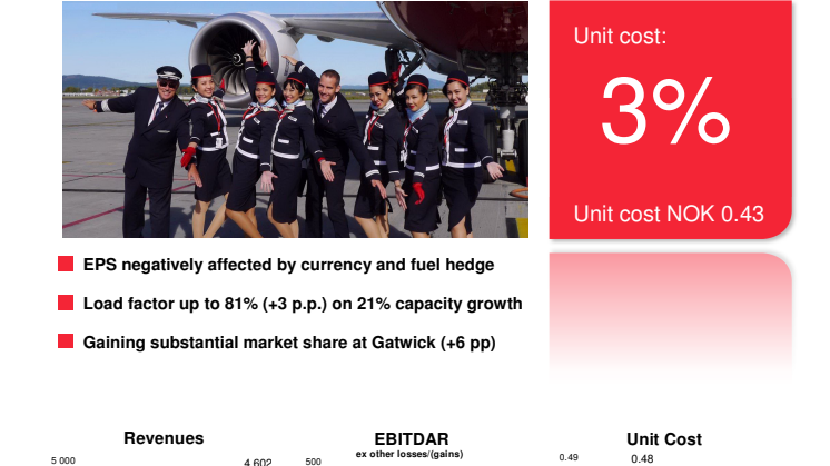 Store valutasvingninger og sikring af brændstof for 2015 har påvirket resultatet og belastet regnskabet med 690 millioner norske kroner for hele året. Endvidere har forsinkelser på langdistanceruterne kostet selskabet 265 millioner norske kroner i 2014. Dette omfatter indlejeomkostninger, ekstra brændstof og omkostninger til hotel, mad og drikke til forsinkede passagerer. Omkostninger knyttet til manglende godkendelse af EU-selskabets ansøgning om amerikansk flylicens udgjorde i alt 117 millioner norske kroner. ”Enmandsstrejken”, som Parat iværksatte i forbindelse med tariffopgøret for de kabineansatte, kostede alene 101 millioner norske kroner.