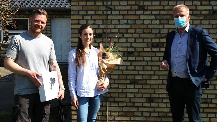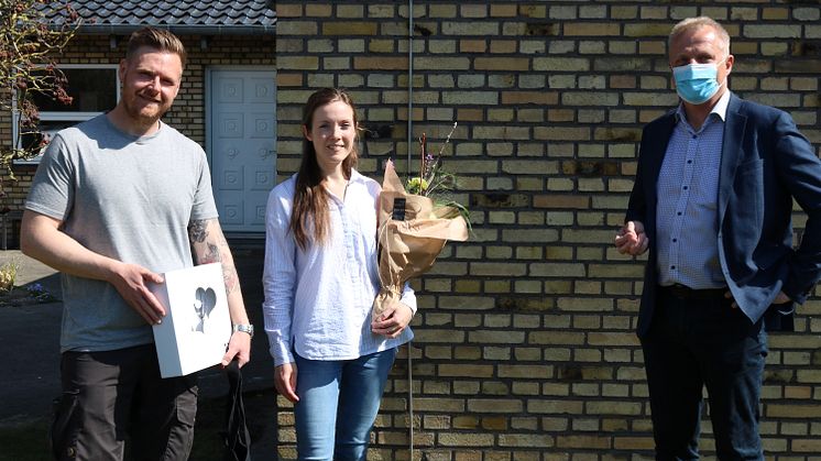 Derfor var borgmester Uffe Jensen forbi med blomster for at byde dem velkommen til kommunen.