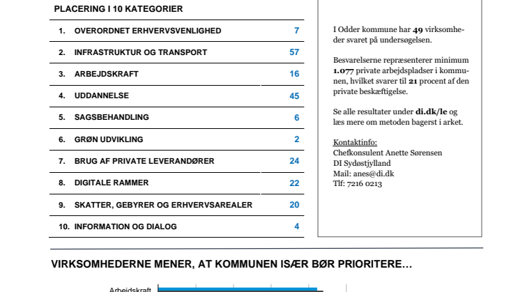Den lokale erhvervsklimamåling er Danmarks største undersøgelse kommunernes erhvervsvenlighed. Det er 13. gang, at Dansk Industri foretager den og 93 af landets 98 kommuner er omfattet af undersøgelsen. Ud af disse 93 er Odder Kommune altså nummer 9.