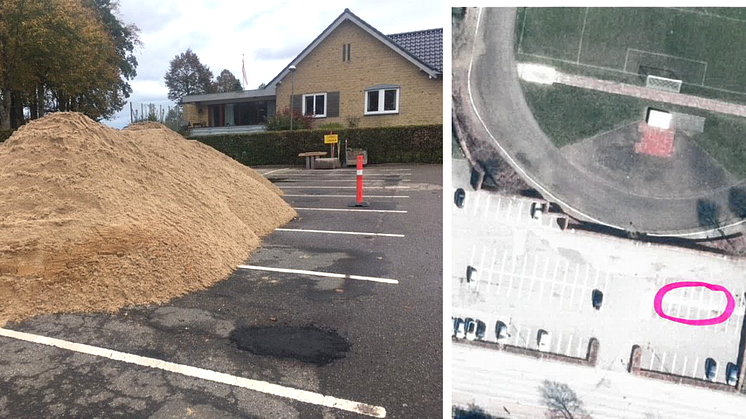 Sand og sandsække vil kunne afhentes på p-pladsen ved Spektrum Odder
