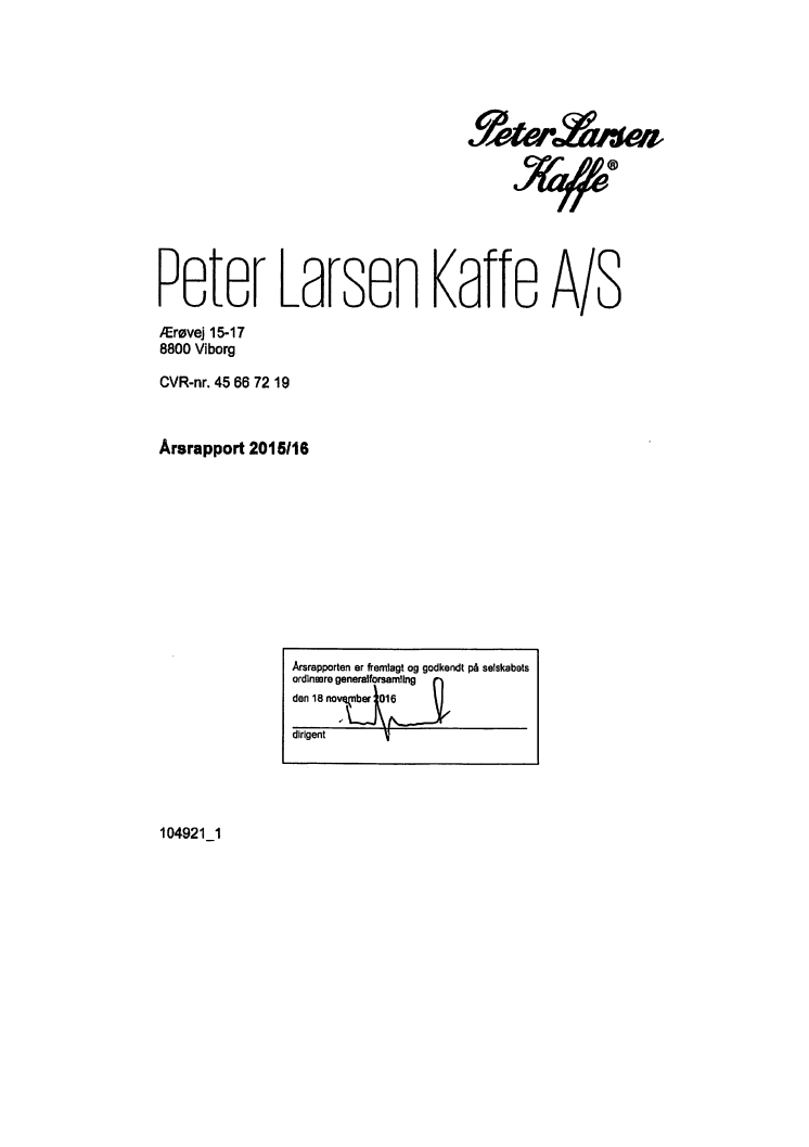 Årsregnskab Peter Larsen Kaffe 2015/2016