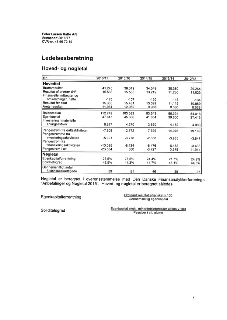 Nøgletal Peter Larsen Kaffe