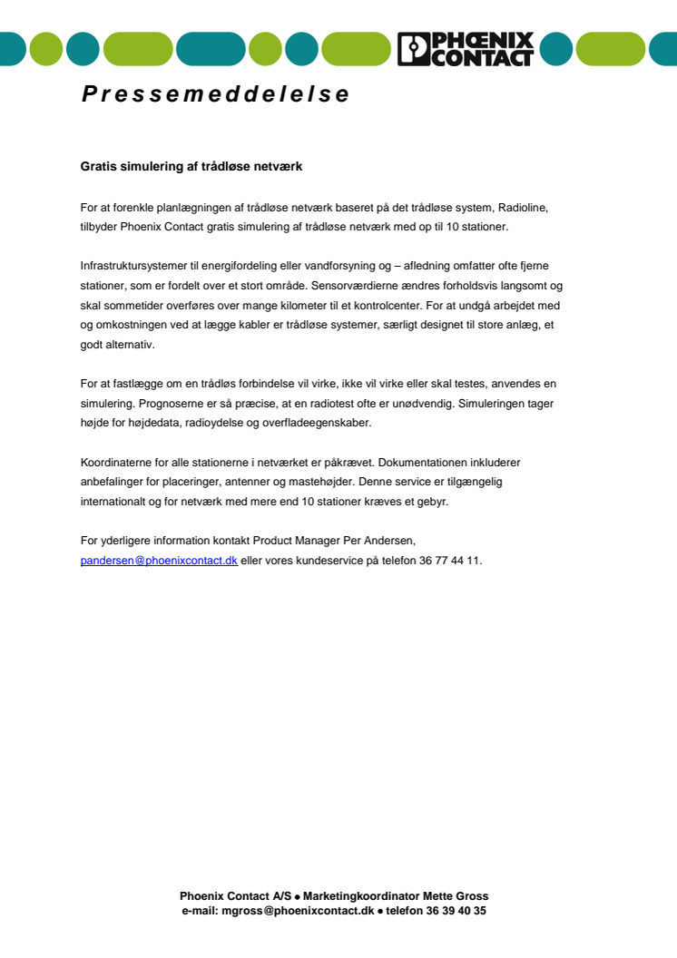 For at forenkle planlægningen af trådløse netværk baseret på det trådløse system, Radioline, tilbyder Phoenix Contact gratis simulering af trådløse netværk med op til 10 stationer.