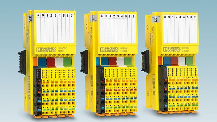 Sikkerhedsapplikationer er nu endnu nemmere og mere fleksible at implementere med I/O systemet Axioline F. De tre nye SafetyBridge I/O-moduler er baseret på SafetyBridge teknologi til sikkerhedsopgaver.