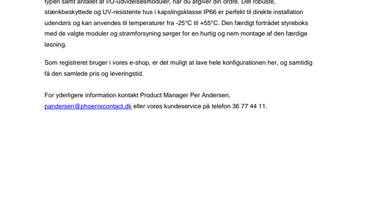Den nye Radioline outdoor box fra Phoenix Contact kan installeres udendørs til hurtig og enkel trådløs overførsel af I/O-signaler og seriel data.