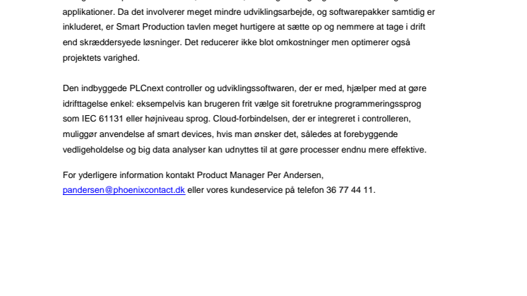 Smart Production tavlen fra Phoenix Contact automatiserer systemer til produktion og materialehåndtering utrolig effektivt lige fra overvågning til kompleks systemkontrol.