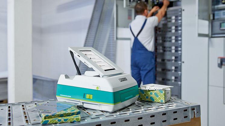 Phoenix Contacts mobile thermoprinter, Thermomark Prime, printer mærker i kortformat til rækkeklemmer, ledere, kabler, enheder og systemer præcis der, hvor der er behov. Takket være et kraftigt, genopladeligt batteri og fuldt integreret mærkningssoftware er printersystemet ikke blot designet til stationær men også – og især – til mobil anvendelse direkte på stedet.